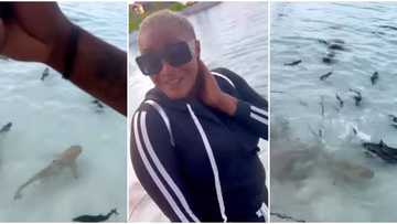 “Better fish for pepper soup”: Fans react as actress Uche Ogbodo gets excited after seeing sharks, shares video