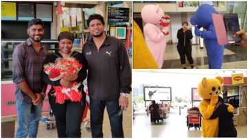 "So sweet": Indian family storm airport in video with flowers and 3 mascots to receive their son's African bae