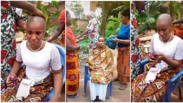 23-year-old Nigerian lady in tears as women shave her hair after the death of her husband, video melts hearts