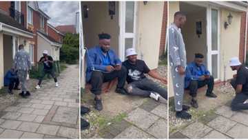 Excited man goes wild as he sees comedian Sabinus on London street, sits on the floor in cute video