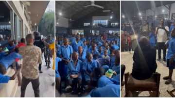 Students rush to the window, get handshakes as 2baba storms secondary school in Benue, small boy questions him
