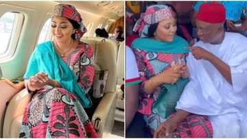 Regina Daniels turns 'hajia', flies private jet as she campaigns for billionaire hubby Ned Nwoko