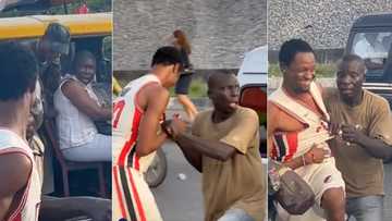 "You dey whine me?" Angry Lagos bus conductor grips man by the shirt after getting pranked with money in video