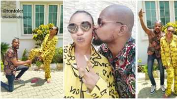 In the video on the actor's page, he looked like he couldn't believe his luck on seeing Elumelu and immediately went on his knees as he hailed the businessman.