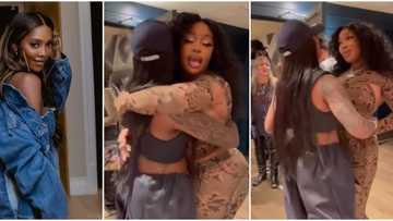 Sweet moment singer Tiwa Savage met American star SZA, music divas share sisterly hug, video trends online