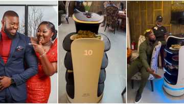 "In case Lolo do shakara": Actor Stan Nze shades wife as he visits Lagos restaurant where robots serve meals