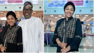 "Hajj 2023": Mercy Aigbe sets off to Makkah with hubby Adekaz, shares airport photos as they depart Nigeria