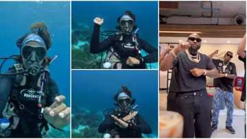 “E choke”: Oyinbo lady does Davido’s Unavailable dance challenge inside ocean, video causes online stir