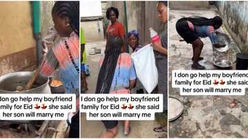 "She said her son will marry me": Nigerian lady works hard for boyfriend's mum, washes plates in video