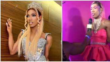 James Brown attends Barbie premiere in pink and purple look, netizens react: "E dey pick cloth from ground"