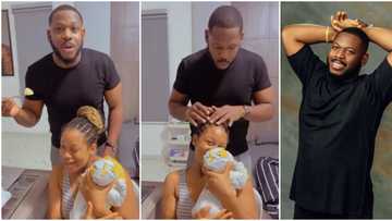 BBNaija All Stars: Frodd shares sweet video of wife's morning care with their baby, gives her a wet kiss