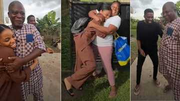 "We've known each other for 9 years": Man secretly returns to Nigeria with girlfriend, surprises parents in video