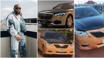 "OBO don cause wahala!" Reactions as Clip of people imitating Davido's Maybach Mercedes with Toyota goes viral
