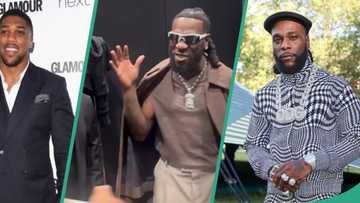"2 kings": Burna Boy & Anthony Joshua meet at Milan Fashion Week, singer admires boxer's attire