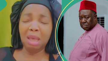 Actor Mr Ibu’s wife raises concerns with emotional video of her crying: “She don dey wear black?”