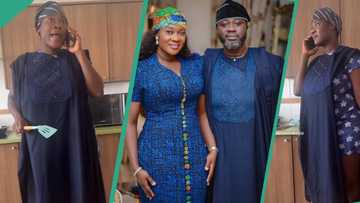Mercy Johnson stirs reaction as she wears her husband's lush agbada to cook, video goes viral