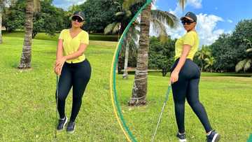“She did BBL”: Regina Daniels trends with photos of big backside and small waist as she plays golf