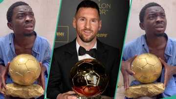 Video as Erekere steals Lionel Messi's Ballon d'Or, fans react: "Dis one an Balloon D'rock"
