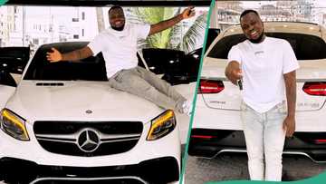 Comedian Egungun buys another Benz in 2023, photos cause drama among Nigerians: “This guy na thief”