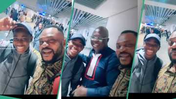 Odunlade Adekola and Mr Latin burst out in excitement as they meet Asisat Oshoala at the airport