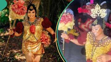 'Ada Omodaddy': BBNaija's Mercy Atang stormed event in Akwa Ibom cultural attire with masquerades