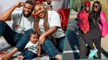 "He's so cute": Drama as Stan Nze reveals his son's face in Christmas portrait with wife, pics trend
