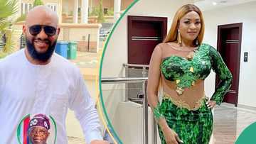 "Did u get permission b4 tying it?" Fans taunt Yul Edochie as May advertises for brand in towel