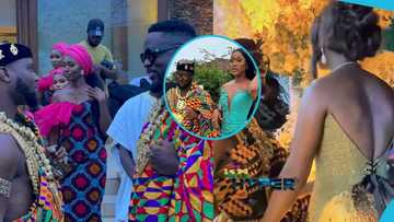 King Promise's pretty "bride" looks stunning in a classy backless corseted gown for their "wedding"