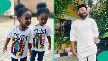 Gabriel Afolayan shares photos of his twins, fans gush: "They have striking resemblance with Moji"