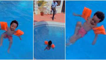 Fans gush over Regina Daniels’ 1-year-old son as he swims impressively inside massive pool in viral video