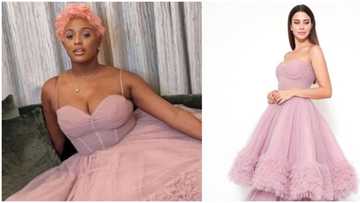 In the pink-themed photoshoot, Powede donned a balloon sleeved corset mini dress in the shade of baby pink. The dress designed by luxury brand, Dona Matoshi, costs a whopping £950 on their official website, which is approximately N527k.