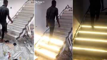 "Electrician wey go Harvard": Talented man shows off automatic lighting staircase in expensive mansion
