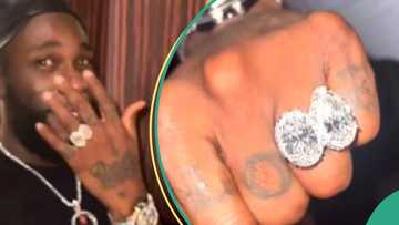 Burna Boy screams as he wears N1.8bn newly acquired ring: "These are the biggest diamonds in the world"