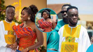 Singer Akwaboah sets new wedding fashion with his white Agbada and stylish embroidery: "Nice shots"