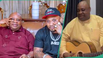 “Oh better papa”:Adorable moment Gov Ademola Adeleke played guitar as son drums, fans react