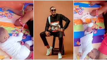 Pikin wey say him papa no go sleep: Fans react as actor Junior Pope shares remarkable way he babysits son