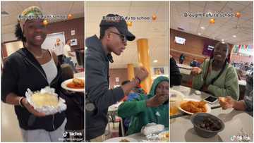 Lady takes fufu to school abroad, her friends gather around it, quickly finish meal in video