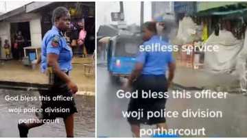 Nigerian policewoman spotted controlling traffic in the rain in Port Harcourt, video stirs mixed reactions