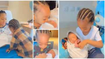 Fans moved to sweet tears as Regina Daniels shares video of 2-year-old son playing senior brother duties