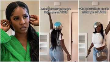 "1st time seeing a whole queen doing this": Tiwa Savage hangs bowl on her head, joins funny TikTok challenge