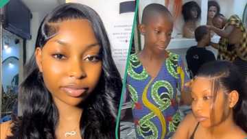 Young girl fixes lace frontal wig for lady, shows expertise, netizens react: "I get trust issues"