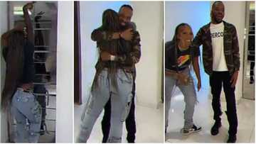 "Sweet mum Jam Jam": Tiwa Savage dances like a little girl to 9ice's song, jumps on his neck as he visits her