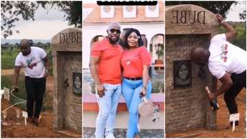 Emotional moment man visits wife's grave, pops wine, poses for picture beside tombstone, many react