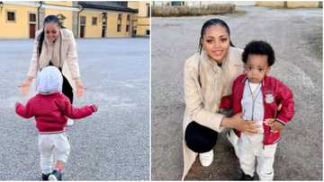 Ned Nwoko missing in photos as Regina Daniels spends Valentine's Day with son Munir in Austria