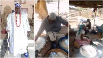 Nigerian king fries garri for community, markets it to people in video, his humility stirs reactions