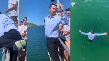 Teacher caught on tape playing with his students, jumps into river fully dressed, children scream & cheer