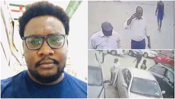 Nigerian man withdraws N400k from bank, says 2 men later broke into his car & took it, shares CCTV footage