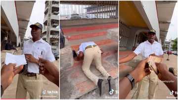 A student in his school uniform with a bag has got many people laughing online. In a video shared by @yabaleftonline, he approached a man and wanted to check out his phone.