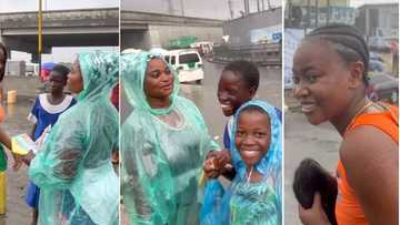 Lady sees woman hawking under rain with her kids, tells her to go home and rest after buying all her goods