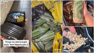 "How did he transport them?" Video shows bags of yam, okro, beans, dried fish man brought from Nigeria to UK